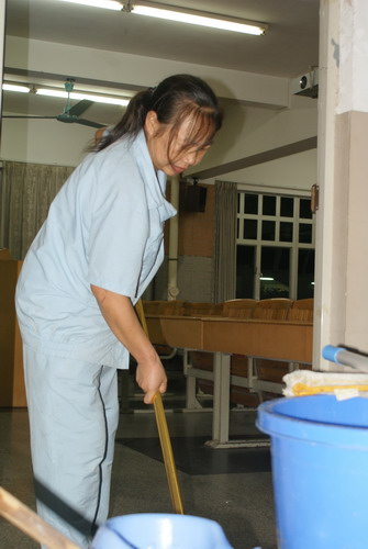 在她出去教室洗拖把的时候,阿姨问记者拍照是何故,记者只说,不会影响到阿姨工作的,阿姨没说什么,于是她就继续专注自己的“美化工程”。