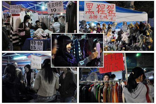 贝岗集市的商品种类繁多,有可爱的毛绒公仔、御寒的潮流衣物、帽子、围巾、鞋子、打口的CD、护肤品等。还有很多改衣服、卖植物、修自行车和手机美容的摊位。许多摊位为了迎合受众需求而设立,在这个渐冷的冬季,围巾、羊毛帽子、毛毛鞋、暖水袋、椅子垫等“应需而出”。随着同学们“自织风”的掀起,毛线摊的生意也日渐红火。