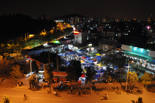 编者按 华灯初上,夜色渐浓。在贝岗商业街后面“隐藏”着一个开放的夜市。每晚,这里各种小吃一应俱全,各类生活用品廉价甩卖。这个只有在夜晚才出现的集市,凭借它品种繁多、价格低廉吸引着许多学生前来淘宝和“改善生活”。但是,由于夜市各个摊位的流动性大、人员复杂,其管理机制也令人担忧。