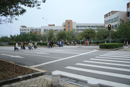 但是,北校区也以优美的校园环境“扳回一城”。北校区面积较小,宿舍离教学楼较近,古老的校道在参天大树的映衬下显得异常清幽,吸 引了众多“步行一族”。在人文气息浓厚的文化广场内,三三两两在“伟人”脚下或阅读或憩息的身影更给人一种远离尘嚣的错觉。相比较而言,充满现代化气息的南校区面积广阔、校道宽敞,选择以自行车代步的人数较多。但是,由于南校区部分校道没有实行人车分流,在上下课高峰期会出现人车共行的拥挤情况,给同学们造成了不便。经贸学院的何同学还告诉记者,南校区的生活区和教学区有马路相隔,虽然学校建设了人行隧道,但是由于隧道曲折,出入口位置不合理,到教学区所花费的时间更多,所以有许多同学都选择直接穿越马路,这样不仅违反了交通规则,而且很危险。此外,南校区穿梭于大学城的公交线路班次少、搭乘人数较多,令同学们感到十分不便。
