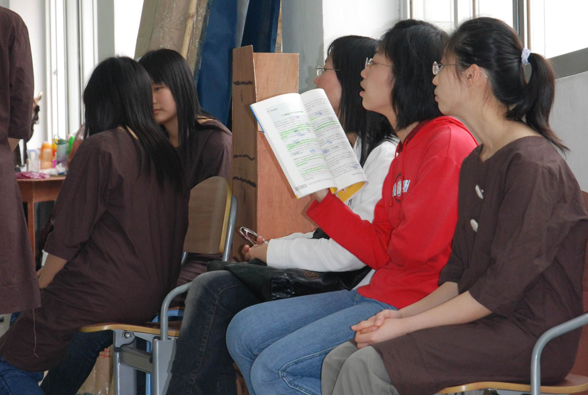 当然,背景音乐的配合也不可或缺。西语学院德语系的戏剧《四川好人》获得了最佳音效奖。负责人介绍到他们专门找人为其中比较重要的诗歌谱曲,很具原创性,而且两位配音现场演绎歌曲,配合台上演员的舞蹈(也是剧组的原创),不仅很好地烘托了主题,更增加了整部剧的感染力。