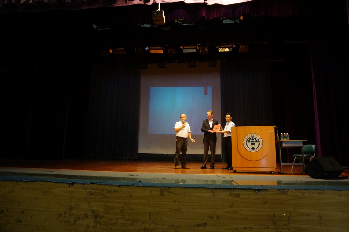 讲座开始前,董金伟代表学校向卢卡斯教授赠送了礼品,卢卡斯向我校回赠了两本他的著作《演讲的艺术》。