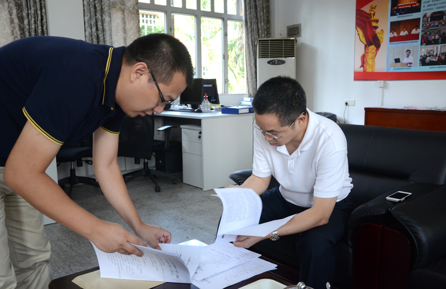 何争(右)调阅有关资料
