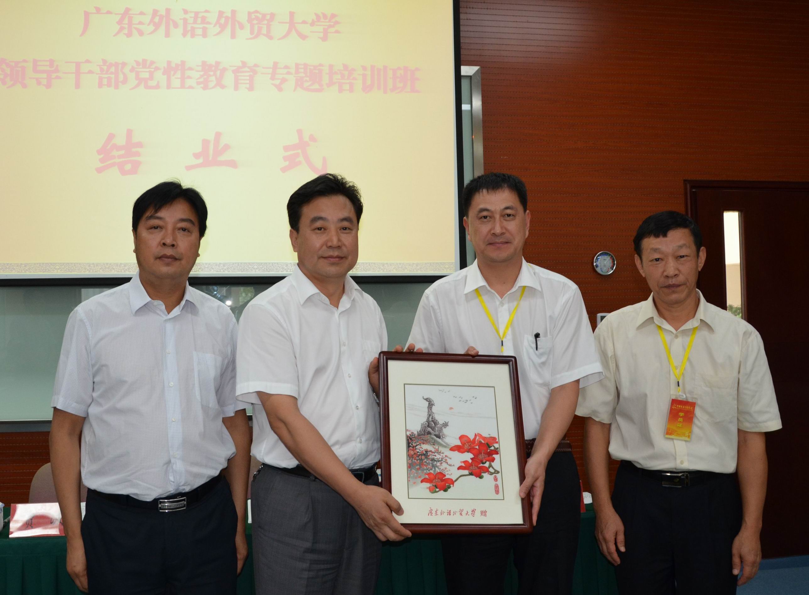 中国延安干部学院副院长靳铭代表该院,对我校培训班全体学员圆满完成学习任务并顺利结业表示热烈的祝贺。他高度肯定各位学员培训期间的学习态度、学习成效。靳铭认为,全体学员一周的表现充分展示了广外领导干部的良好素质和精神风貌。靳铭还就如何“弘扬延安精神,勤奋务实敬业”谈了四点意见:一、加强党性修养,坚定理想信念,提高高校党建科学化水平;二、增强宗旨意识,坚持立德树人,办好人民满意大学;三、坚持实事求是,传承实干之风,推动学校科学发展;四、保持艰苦奋斗,坚守清正廉洁,促进高校健康发展。讲话中靳铭强调,学员们要把党性修养当作共产党人的终身课题。