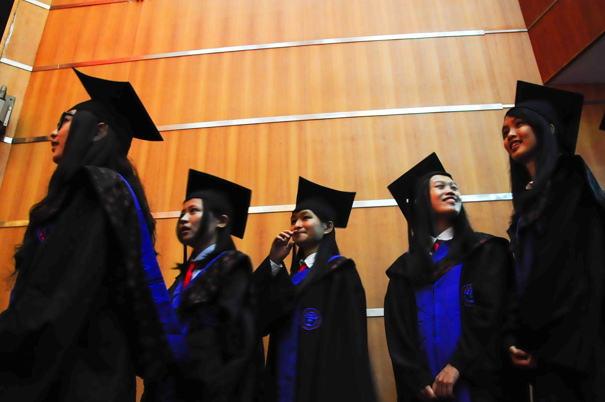 红色的地毯端庄,黑色的学士服高贵,黄色的鲜花灿烂,蓝色的学士学位证书庄重……这一场毕业典礼五彩斑斓,就像大学生活,是那样的多姿多彩。这是属于09级毕业生的最后一场专属表演,每一个微笑,每一次鼓掌,都值得分外珍惜。从2009年到2013年,他们每天都在为自己的蓝图添上一笔。现在的他们,终于准备好了。