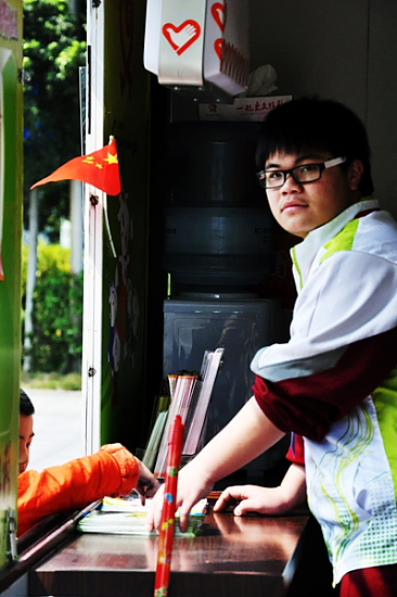 志愿者坚守岗位服务有需要的游客