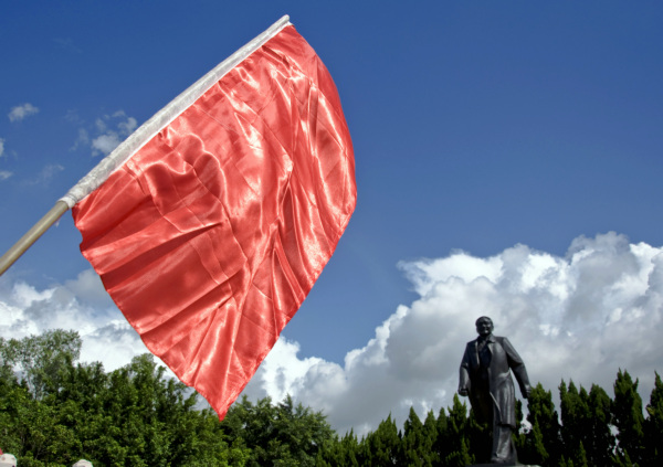 莲花山上邓小平雕像前的红旗。