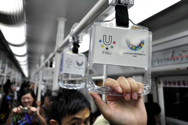 深圳地铁内握把上的2011年大运会宣传广告。