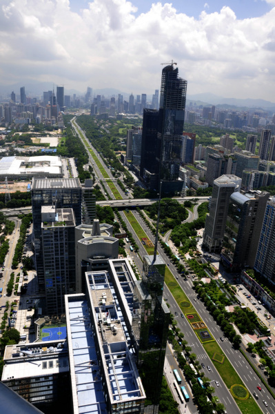 从50层楼的高度俯瞰深南大道,