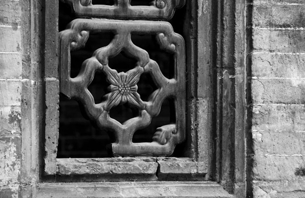 残缺的雕花窗默默地诉说着历史的华丽与苍凉