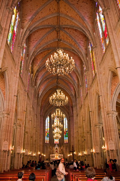 广州越秀区的一德路,就有一座哥特风格的天主教堂——石室圣心大教堂,她是可与巴黎圣母院相媲美的全球四座全石结构哥特式教堂建筑之一。请跟随记者的镜头,感受这圣殿内外的雄伟。