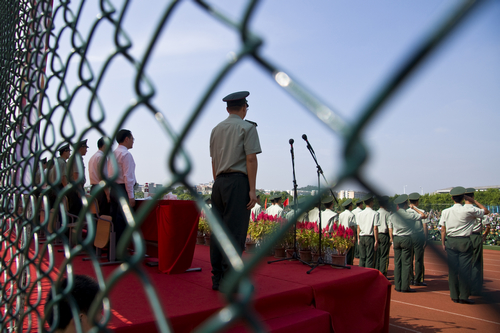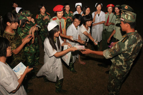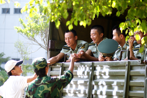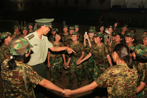 编者按 为期两周的军训终在完美的汇演中鸣金收兵,14天的心酸,14天的困苦,14天的快乐,14天的汗水与泪水,14天的酸甜苦辣都已成了参加军训的每个人的无边“烙印”。9月23日晚,记者走进军训军旅,看到的是浓浓的感恩场面;9月24日上午,记者在军训汇演现场,感受到的又是一阵阵欣慰与感动。