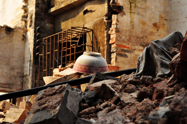 在西关的废墟上,我们注视着不远处忙碌的现代文明