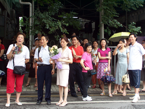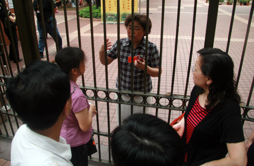 “陪考的家长,请保持安静好吗?”尽管用作考场的教学楼远离正门街道,但培正中学的工作人员依然对在门外大声聊天的陪考家长进行劝阻。