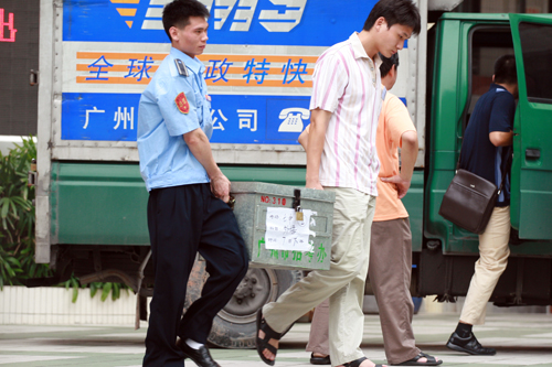 搬运高考试卷,不过如此:考试途中,一台邮政特快专递车辆驶进广州七中考场,在警察的监控下,工作人员快速从车后厢抬出一铁箱,令人惊奇的,是这个铁箱子里装的竟然是高考试题。