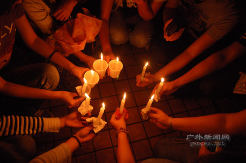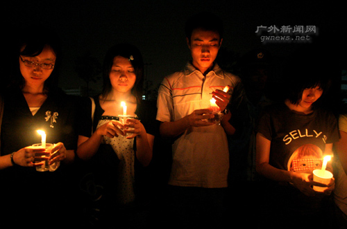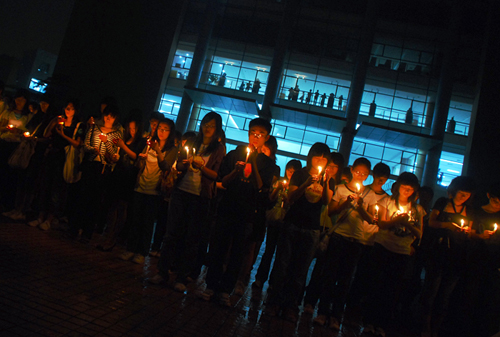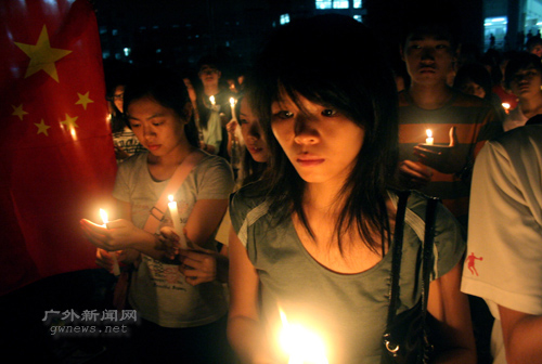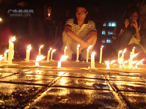 5月19日,正值5·12汶川大地震七日祭。当晚,我校学生自发组织了一系列悼念活动。图书馆广场、中心湖、宿舍区,同学们齐聚,点燃蜡烛,哀悼遇难同胞。
