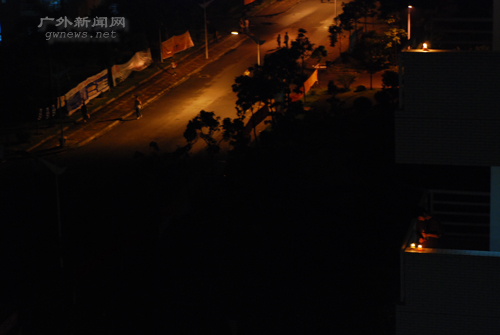 宿舍阳台上的烛光与校道上灯光交相辉映(图/梁子成)