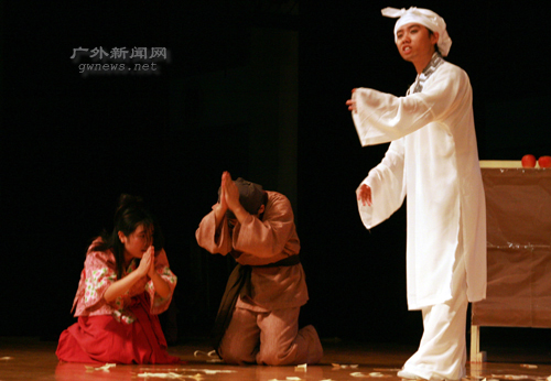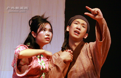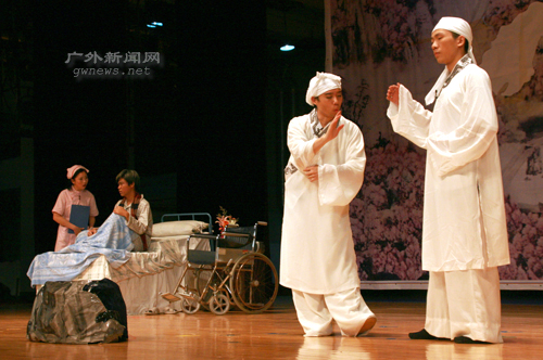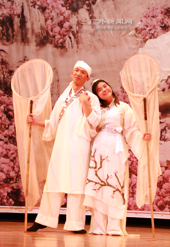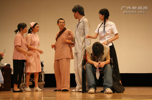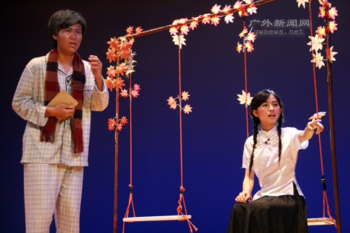 编者按 5月25日晚,在如潮的喝彩声中,中文学院戏剧《暗恋桃花源》的帷幕徐徐落下。该剧是继07年5月上演的《日出》后,中文学院话剧队的又一巨制,凭借独特的情节及演员的出彩演出,话剧得到了广大师生的肯定。在当晚演员倾情演出的同时,本网记者将那一幕幕精彩的画面用相机记录下来,供当晚的观众重温,也与未能到场观看的学生一起分享这一台中文大戏。