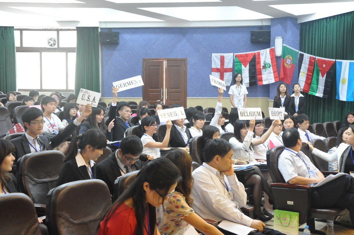 从初赛中过关斩将、脱颖而出的决赛选手们跃跃欲试,迫不及待地想要一展身手。大会在正规演讲开始半个小时内,就进入了动议(MOTION)环节,围绕“国际合作”这一话题十几个国家代表站在自己国家的立场上分别进行了深入的见解阐述。在自由磋商环节,各国家代表们分成了几个阵营,分别代表了不同利益集团,展开了热烈的讨论、协商,力求各方意见达成一致。最后,在17个国家代表的共同协商与努力下,一份工作文件(workpaper)历史性地被全票通过。全场欢呼一片,为来之不易的结果喝彩。