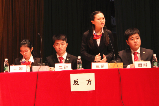 “中国传统文化是由中华文明汇集而演化成的,是一种反应民族风貌和民族特质的文化观念,而廉洁文化不单单是指个人的廉洁,而是指从政的思想道德上的廉洁、从政的社会环境、氛围上的廉洁、从政人员的职业道德廉洁和社会公德廉洁,廉政文化建设正是社会主义先进文化对中国传统文化的丰富和发展。”正方一辩一开场便以铿锵有力的语气阐释了该队对中国传统文化在廉政文化建设中所发挥的积极作用的肯定。