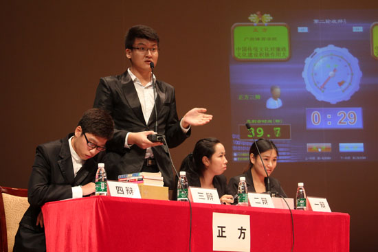 广州体育学院与南方医科大学本轮辩题为“中国传统文化在廉政文化建设中消极作用大还是积极作用大”,广州体育学院为正方,南方医科大学为反方。