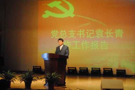 随后,袁长青代表新当选的委员对全体党员的任信表示感谢,他同时宣读了方凡泉副校长发来的贺词。最后,李于昆院长代表学院行政发表了热情洋讲话。他表示学院党政班子将精诚团结,共同把学院建设得更加美好!大会在《国际歌》落下帷幕。