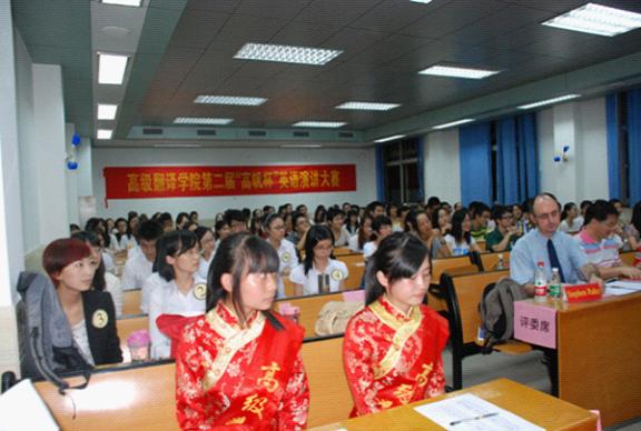 “高帆杯”英语演讲大赛是“高帆杯”系列学术赛事的另一个比赛,迄今共举办了2011、2012两届,均由我院资深中外教师担任评委。演讲比赛于每年的10月举行,分为初试和决赛两轮,本科生和研究生同台竞技。比赛以定题演讲、评审问答的形式,在确保学生把握时代主题的同时考察学生的语言沟通技能。两届比赛的中心内容分别是以“A Word that has Changed the World”和“What we cannot afford to lose”为题的三分钟有准备演讲,参赛选手以纯正流利的语音语调,严谨深刻的思考,镇定大方的台风,展示了翻译学子扎实的语言功底和良好的综合素质。