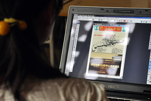 记者组现场进行报纸排版