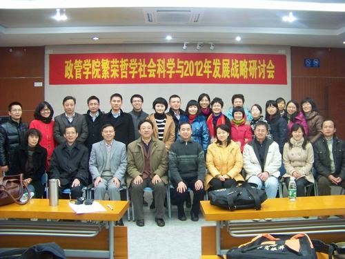 本网讯 1月6日-7日,政管学院繁荣哲学社会科学与2012年发展战略研讨会在广晟讲堂隆重召开。大会由院长彭未名主持,学校科研处处长阳爱民出席会议并讲话,政管学院全体教职工参加了会议。大家集中学习了党中央、教育部和学校关于推进哲学社会科学繁荣发展的相关文件精神,共同研讨了学院2012年乃至未来十年的发展战略。
