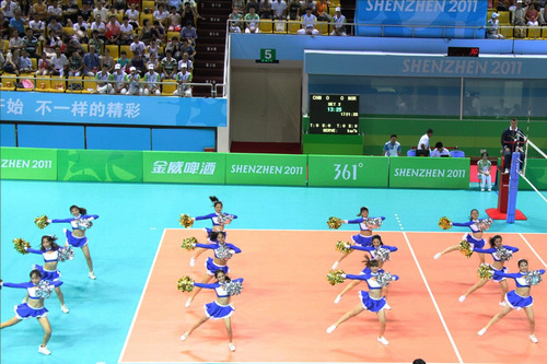 截至8月15日,在大运会四天的比赛中,我校国魅啦啦队已经进行了11场比赛的体育展示现场表演工作,因为工作时间多变,她们有时候连晚饭都顾不上吃,但还是坚持完成工作。大运仍在继续,啦啦队员们的努力也仍在继续。