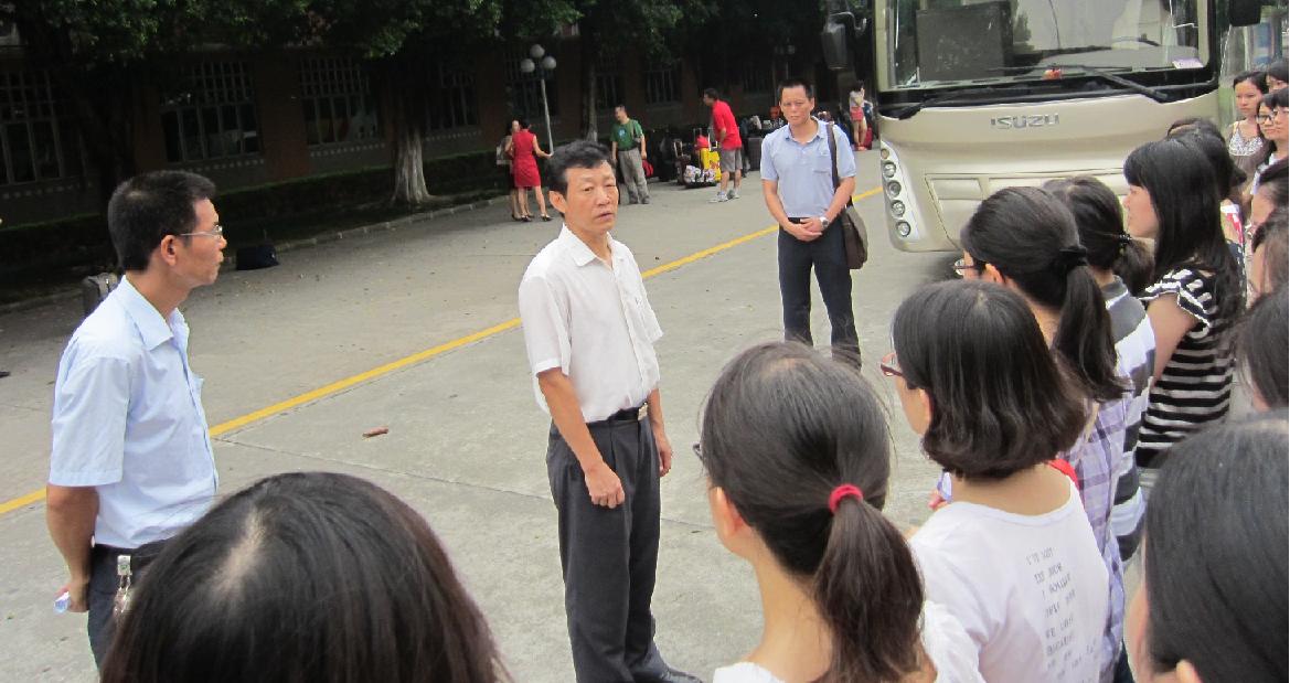 本网讯 8月8日下午,应急口译组的学生译员们在翻译学院党委书记高云坚带领下奔赴深圳,校党委副书记许国彬、校团委书记谢秀兰等前来送行。