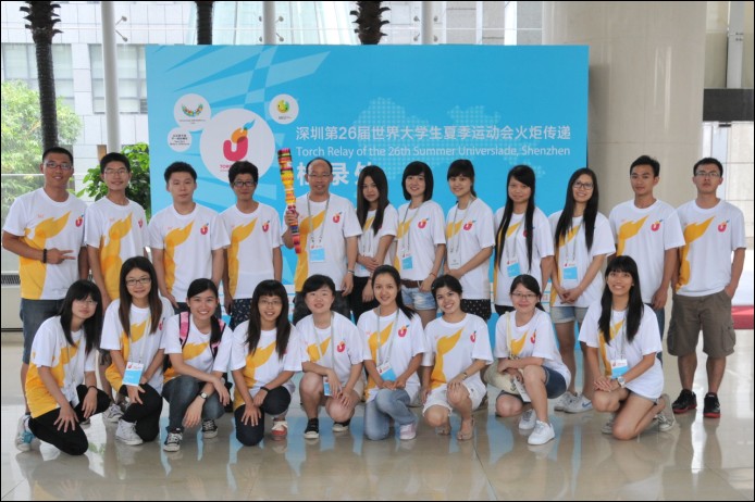 本网讯 在8月11日深圳市内“青春梦想大运线”的火炬传递中,我校22名翻译志愿者为外籍火炬手和火炬传递的组织方在火炬传递中提供英语、西班牙语、法语、德语、俄语、阿拉伯语六大语种的翻译服务,最大限度地扫清语言障碍,圆满完成火炬传递的各项任务,得到了外籍火炬手和组织方的肯定。