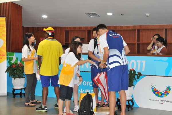 火炬传递顺利结束,但期间还是发生了一些小插曲。英文学院的叶湘谈到,有几个火炬手登车前发现忘了带证件,要赶回去宿舍拿,还好最后都顺利登车了。为了缓解火炬手紧张的情绪,志愿者会主动和他们聊天,了解他们对深圳的印象和对大运会的看法。英文学院的魏湘婷感慨当天5点多就开始下大雨,工作人员冒雨赶往投放车发车地点开展筹备工作,很多人衣服和鞋子都湿透了,但什么都顾不上了,还好在火炬手登车前,雨就停了,火炬传递才能顺利进行。
