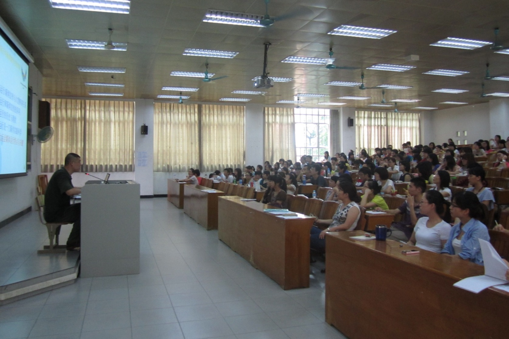 本网讯 7月18日,我校大运会官方通讯社(UNS)志愿者第一期第一次培训在北校区顺利举行。新华社体育部记者采访室主任、著名篮球评论员徐济成和新华社音频部副主任、资深媒体服务工作者陈越,分别为我校近两百名UNS志愿者介绍了媒体运行及大运会UNS工作。我校团委青年志愿者行动指导中心主任余海波出席活动。 培训大会分上午和下午两场。上午的培训是由徐济成主讲“媒体运行”。他首先简单介绍了媒体服务、媒体运行和新闻宣传的不同及重要性、志愿者行为方式等,随后幽默地与志愿者分享自己在多年工作中总结的“5T法则”(Target,Talk,Teamwork,Tough,Together)等宝贵经验,还特别强调“写新闻和消息要做到简洁(Clean)、明了(Clear)”。他指出,我们的工作核心就是“服务”,为媒体提供新闻和信息,在服务中提高综合能力。志愿者们认真听讲,及时做笔记,反应热烈。