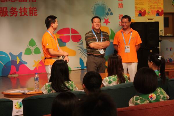 本网讯 8月6日下午,团省委学校部部长张文杰莅临五洲宾馆U站,对志愿者进行了亲切慰问。U站站长何军和领队老师陈国球向张文杰介绍了宾馆志愿者的服务内容后,张文杰鼓励志愿者“积极服务,勇于奉献”。这让我校在五洲宾馆U站服务的志愿者倍感亲切和温暖。