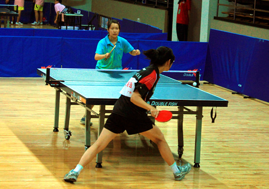 此外,参加第一场女双比赛的是来自财院的曾丽丹和法学院的叶绮芳。比赛在下午5:15分开始,对手是来自天河学院的禤敏珊和黄佳君。对手与我校队员的实力有一定差距,但首日我校两名女双队员还没有完全适应比赛,因此第一局比赛搭配不够好,失误较多,以11-8取胜。第一局比赛结束后,孙艳玲帮助队员分析形势,研究打法,两名队员也适应了比赛。随后,曾丽丹、叶绮芳技术水平渐渐发挥出来,以11-7、11-5轻松拿下后两局。最后曾丽丹和叶绮芳以总比分3-0获胜进入第二天上午的16强争夺战。