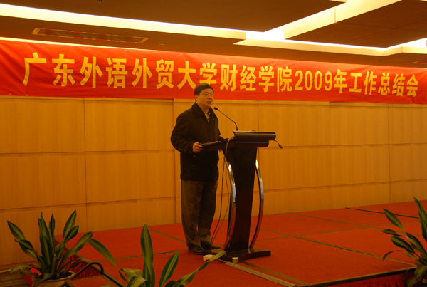 陈伟光首先对财院2009年行政工作进行了总结,并向全院教职工传达了广东省教育厅厅长罗伟其1月22日在学校作的“广东省高等教育改革与发展工作报告”以及学校1月23日召开的“2010年发展战略研讨会”精神。