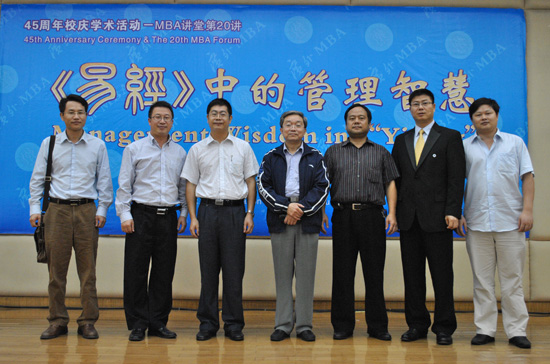 本网讯 “《周易》以前的好多解法是错的,对号入座会解死《周易》。”10月14日下午,我校45周年校庆系列学术活动之一、MBA讲堂第20讲——“《易经》中的管理智慧”在北校区图书馆负一层报告厅举行,此次讲座由我校栾栋教授主讲,广州培正中学校长吕超,我校党委宣传部部长孔晓明,人事处处长方迎生,留学生教育学院院长梁学宏等出席了讲座。讲座由MBA教育中心主任孙建军主持。