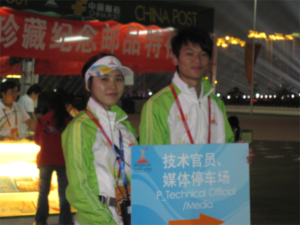 校团委志愿者代表——屈楠,虽然跟伊力都是为“志愿者服务志愿者”,不同的是她在广外志愿者服务站为我校5000多名志愿者服务,包括志愿者的全方位宣传报道、统计接送车辆需求、安全保障工作和慰问工作。这个完全自发的志愿者服务队伍,没有“小白菜”的服装、徽章、志愿彩……留给他们的只有回忆,但他们依然会从凌晨2点一直等到早上7点只是为了给“归家”的志愿者派放慰问品,依然会为了志愿者接送而奔走操劳……