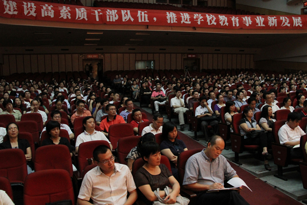 本网讯 9月30日下午,中层领导干部换届工作动员大会在我校北校区云山会堂举行,会议宣布中层领导干部换届工作即日启动。我校党委书记隋广军作题为《建设高素质干部队伍,实现学校教育事业新发展》的动员报告。他在报告中详细介绍及部署了中层领导干部换届的相关工作。会议由校党委副书记陈建平主持。