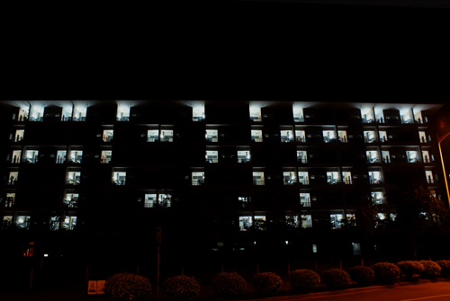 本网讯 广外学子用非常特别的亮灯活动为祖国六十华诞献礼。9月19日晚上十点二十分,“闪亮广东,祝福祖国,高校实体建筑物亮灯活动”在广外南校区学生公寓隆重举行。