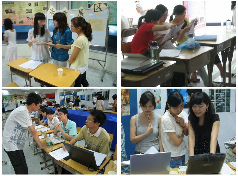 展览按学院划分为英文、中文、经贸、法学等十大展区,选手自制的论文海报显得格外抢眼。其中,英文学院参展选手最多,展区最大,还制作了专门的班级海报。相比之下,中文展区则以其浪漫、儒雅气质取胜,经贸、法学等以关注民生,切合实际见长。
