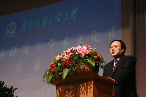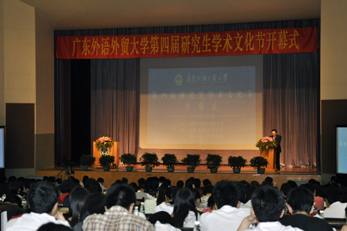 讲座过后,开幕式安排了校研究生会陈文雅同学为观众讲解本届研究生学术文化节的活动内容。在借鉴前三届学术文化节做法的基础上,本届学术文化节在活动形式的多样性以及活动层次的纵深拓展上做出了有益的尝试。在活动形式上,本届学术文化节既设置了知名教授讲座、安排了研究生论文成果设计展、大学生跨文化素质培养研讨会,还引导学生开展“良师益友”征文活动为全校营造尊师重教的良好氛围;在学术活动的纵深拓展上,本届学术文化节在积极开拓校外学术资源的同时,着力挖掘校内各研究生培养单位的学术文化活动潜力,从纵、横两个维度拓展广外大研究生的学术平台。尤其值得一提的是经管政法类研究生读书月及辩论赛,该活动集中经贸、管理、政管、法学四个学院研究生一起开展活动,丰富了本届学术文化节的内容,为我校深入发掘研究生学术文化潜力做出了有益的尝试。活动主要由竞赛类、讲座类、论坛类三类,共20个大项目组成。活动将从3月19日持续到5月21日,同时在南北校区举办。