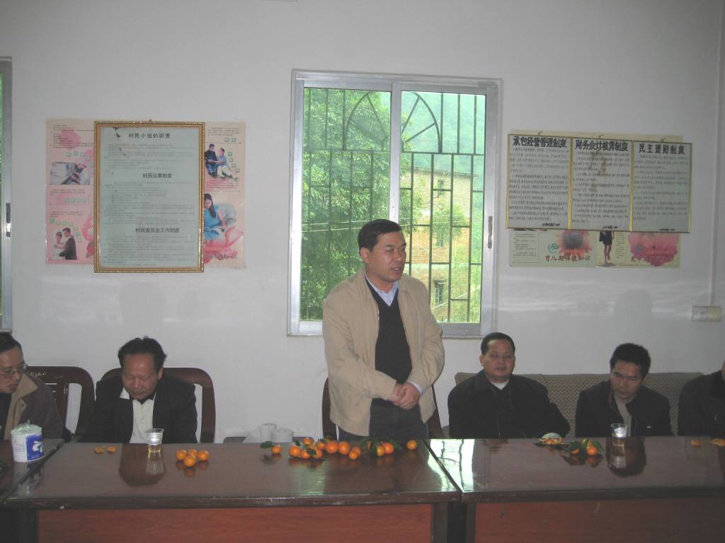 党支部成员在大垌村村委会办公室与当地相关领导和群众进行了座谈。参加座谈的有江谷镇人大主席范桂意,党委委员李信芳以及大垌村党委书记吴锡镜等。会议由李信芳主持。