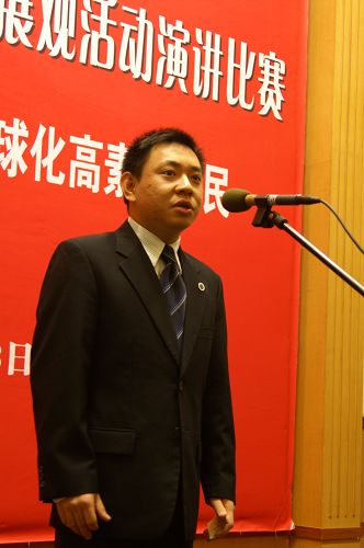 参加比赛的选手大部分是教师,他们围绕“实践科学发展观,培养全球化高素质公民”这一主题,结合自己的实践工作进行阐述,他们声情并茂,激情四射。第一位上场的选手崔艳红,就结合自己的教学实际,探讨了如何在教学中培养高素质公民的问题,并以流畅自然的谈吐,优雅从容的姿态,为比赛打下了一个良好的开头。