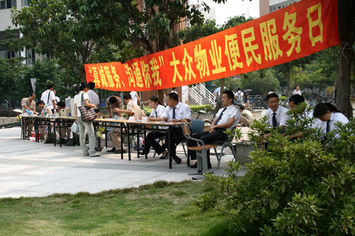 据悉,北校区服务点分别设在广外附中桥头和六教东面一楼大厅,由大众物业公司和广房物业公司负责进行不同项目的服务。而六教一楼服务点则在下午2点开始为师生们提供电脑、DVD、音箱等家用电器的维修服务,并广泛收集意见和建议,以加强物业公司和师生们的交流。