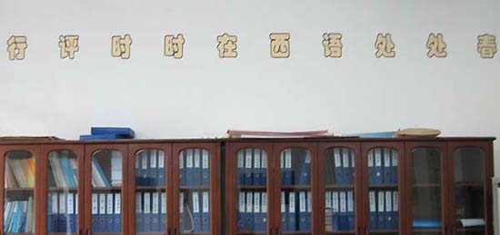 本网讯 近日,西语学院将该院创作的政风行风建设警句以标语形式分别悬挂在西语学院一楼大厅、办公室和会议室门前,营造了浓厚的行评气氛,掀起了行评高潮。