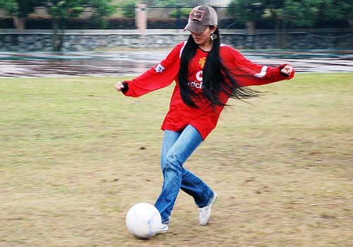 值得一提的是,本次比赛出现了一位女将的身影。身着红衣的新闻社代表队队员张元斌打完了上半场。虽为场上唯一的女队员,但她在场上抢球、卡位丝毫没有示弱,并且在一次进攻中险些破门,赢得了满场观众的喝彩。
