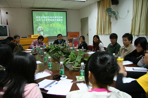 在评审专家的鼓励下,学生们畅所欲言,踊跃地表达自己的心声。首先发言的是06级意大利语的学生代表,他赞赏其专业老师注重培养学生的实践能力,同时也希望学院可以给予更多的出国留学机会。04级越南语的同学则反映虽然学院的教学手段先进、老师敬业,但是教学资料有限,希望学校可以增加拨款多提供点资料,让学生更多了解越南,同时,他希望可以多引进一些外籍教师。其他学生代表也分享了自己的学习感受以及期望。
