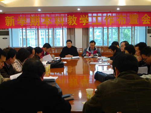 本次会议提出本学期本科教学工作的指导思想是:根据教育部、财政部《关于实施高等学校本科教学质量与教学改革工程的意见》(教高〔2007〕1号)和教育部《关于进一步深化本科教学改革全面提高教学质量的若干意见》(教高〔2007〕2号)的文件精神,围绕我校教育事业发展“十一五”规划提出的发展目标和要求,启动以“强化教学管理,提高教学质量”为核心内容的新一轮教学改革工程,在全校范围内形成重视教学、重视质量的良好环境和管理机制,为把我校建设成高水平的教学研究型大学打下扎实的基础。